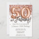 Convite de aniversário Dourado 50º rosa e rosa de ouro elegante e moderno 50 e fabuloso com moderno roteiro escrevendo e balões de folha divertida.