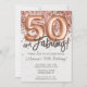 Convite de aniversário Dourado 50º rosa e rosa-ouro elegante 50 moderno e fabuloso com modernos roteiros escrevendo e balões de folha divertida com papel de textura impresso.