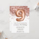 Convite de aniversário Dourado 9º rosa e rosa de ouro elegante 9º convite de aniversário para uma menina de 9 anos com roteiro moderno e balões de folha divertida.