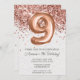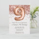 Convite de aniversário Dourado 9º rosa e rosa de ouro elegante 9º convite de aniversário para uma menina de 9 anos com script moderno e balões de folha divertida com papel de textura impresso.