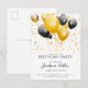 Ouro festivo e balões negros e estrela dourada confundem convite de aniversário moderno. Estilo festivo e moderno.