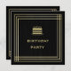 Na moda e Convite de aniversário masculino clássico para homens e rapazes. Com uma bonito borda dourada de linhas simétricas em um fundo de efeito texturizado preto com uma imagem impressa de um bolo... O reverso desta placa tem seus detalhes de evento com a imagem adicionada de uma fatia de bolo no canto superior esquerdo e inferior direito. Todo texto é totalmente personalizável para atender às suas necessidades. Se você quiser ajudar a personalizar ou quiser fazer a correspondência de produtos, entre em contato comigo através da minha loja e eu ficarei muito feliz em ajudá-lo.