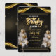 Bonito, elegante convite de aniversário personalizável a preto e ouro.