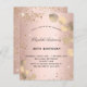 Um fundo rosa dourado decorado com folhagens de eucalipto e pó brilhante falso. Personalize com um nome e detalhes da festa. Letras pretas.