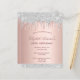 Um convite moderno, elegante e glamoroso para a festa de 50 anos (ou qualquer idade) de uma mulher. Um fundo gradiente rosa dourado com gotejamentos de glitter rosa dourado, rosa e prata falsa, com efeito de tinta pingando. Personalize e adicione um nome e detalhes da festa. O nome é escrito com uma fonte manuscrita moderna de cor rosa dourado escuro.