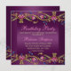 Este Convite de Aniversário personalizável Elegante apresenta ouro e flor rosa em um fundo Purple. Personalize-o adicionando seus detalhes na cor e fonte de sua escolha!