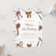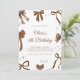 Convite de Aniversário com Laço Elegante | Convite de Festa Coquette Neutro Marrom | Aniversário de Meninas Chic Minimalista | Convite Personalizado Editável