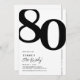 Apresentando um eterno preto e branco clássico 80 convite de aniversário que combina perfeitamente o encanto do mundo antigo do número de letra serif ousado '80' com um modelo personalizável moderno e amigável. Este convite não é apenas um cartão, é uma marca significativa para estimar o marco de virar 80.