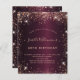 Para um 40º aniversário (ou qualquer idade) elegante. Cor de fundo bordô. Decorado com pó de brilho falso em rosa dourado. Personalize e adicione um nome, idade e detalhes da festa. O nome é escrito com uma fonte de letra manuscrita