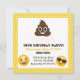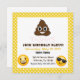 Convite de aniversário divertido emoji, com um poop emoji como o principal emoji.