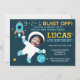 Prepare-se para contar uma festa de aniversário espacial-tática com este Convite Astronauta! Tem um astronauta adorável, com o espaço perfeito para colocar a foto do seu filho. Um navio de foguete bonito e o tema espacial constituem o fundo. Você está livre para decolar com este convite!