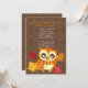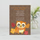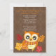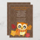 Comece a comemorar bem com este adorável convite de outono/ Aniversário do outono. Este convite bonito tem um fundo de padrão diagonal marrom com uma adorável coruja laranja vestindo um cachecol listrado. Há folhas coloridas de repolho, laranja e amarelo de outono. Perfeito convite de aniversário ou apenas um Queda se juntam. Veja nossos muitos outros designs e variações.