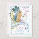 Uma fada pequena doce senta-se na lua e polvilha-se um arco-íris e uma mágica para você. O cartão é fácil de personalizar com seus fraseio, pia batismal, cor da pia batismal e escolha de seis tipos de papel.