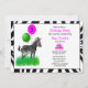 Este convite para raparigas moderno apresenta um design de Zebra preto e branco. Os balões rosa festivo e verde limão foram adicionados juntamente com um bolo de aniversário. Personalize o convite desta criança com sua informação. Este convite é um modelo e é totalmente personalizável.