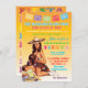 Uma garota de pinos super fofa retrabalhada de uma ilustração de safena, veste um cobertor sombrero e mexicano contra um fundo de pôr do sol. Excelente de Fiesta Birthday mexicano, festa de chá de panela para a noiva ser ou festa de lingerie.