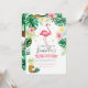 Bonito aquarela flamingo abacaxi convite com palmeiras de aquarela e flores de plumeria