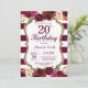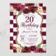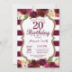 Convite de aniversário Floral da Burgundy para mulheres. Vermelho e Festa de aniversário Dourada da Borgonha. Dourada Glitter. Flor Floral de Aquarela Burgundia. Borgonha e White Stripes. 13 15 16º 18º 20 21rua 30 40º 50º 60º 80 de 70 100º, qualquer idade. Digital Imprimível. Para mais personalização, clique no botão "Personalizar" e use nossa ferramenta de design para modificar este modelo.