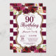 Convite de aniversário Floral da Burgundy para mulheres. Vermelho e Festa de aniversário Dourada da Borgonha. Dourada Glitter. Flor Floral de Aquarela Burgundia. Borgonha e White Stripes. 13 15 16º 18º 20 21rua 30 40º 50º 60º 80 de 70 100º, qualquer idade. Digital Imprimível. Para mais personalização, clique no botão "Personalizar" e use nossa ferramenta de design para modificar este modelo.