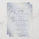 Convite de Aniversário de Casamento de 25 Anos Prata. Design elegante com suaves espirais e toques florais. Azul cinza pálido e toque de cinza prateado com maravilhoso detalhe de textura falsa que certamente agradará. Personalize o texto com as informações da sua festa de aniversário