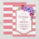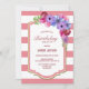 Convite de aniversário floral listrado rosa.