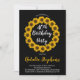 Flores solares ensolaradas e convites de aniversário ouros amarelo, preto e branco. Mostrado aqui para um aniversário de 40 anos, o convite pode ser personalizado para qualquer idade. Design original por Holiday Hearts Design (todos os direitos reservados).