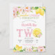 Celebre o dia especial do seu pequeno com este encantador convite de aniversário de limão e floral. Com limões em aquarela e flores cor-de-rosa, este design alegre é perfeito para um tema de festa de verão. O layout divertido destaca o nome e a idade da criança, ao mesmo tempo em que fornece todos os detalhes do evento em um formato elegante. Ideal para aniversários de crianças pequenas, este convite combina acentos vibrantes de citrino com flores delicadas para criar um visual fresco e festivo que os convidados vão adorar.