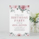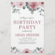 Orçamento Personalize esta Rosa Dusty Blush Pink Mauve, e White Elegant e Na moda Floral Watercolor Qualquer Convite de aniversário de Idade em fundo branco com sua mensagem e detalhes. Este convite para na moda inclui flores rosa e verde botânico do eucalipto moderno com tipografia elegante e elegante é perfeito para as celebrações Sweet 16, 1rua, 21ruas, 30, 40º, 50º, 60º, 70, Festa de aniversário.
