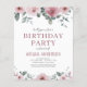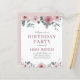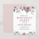 Orçamento Personalize esta Rosa Dusty Blush Pink Mauve, e White Elegant e Na moda Floral Watercolor Qualquer Convite de aniversário de Idade em fundo branco com sua mensagem e detalhes. Este convite para na moda inclui flores rosa e verde botânico do eucalipto moderno com tipografia elegante e elegante é perfeito para as celebrações Sweet 16, 1rua, 21ruas, 30, 40º, 50º, 60º, 70, Festa de aniversário.