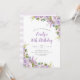 convites de festas de aniversários impressos personalizados do barato. Este bonito design feminino tem uma borda floral de cor d'água com flores roxas pastel e verde. Personalize o modelo com os detalhes do evento. O verso tem um padrão de faixa de aquarela roxa ou use o espaço para adicionar texto e fotos adicionais. Clique em Personalizar para escolher qualquer cor de fundo e editar as fontes e cores do texto para criar um convite de janto de aniversário exclusivo para sua filha.