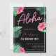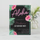 O design apresenta efeitos luminosos, flores e folhas tropicais e um fundo preto ousado. Personalize o texto editável para qualquer evento! Use-o para um folheto promocional, evento da loja, aniversário, festa, celebração, Luau, despedida de solteira, jantar de noivado ou chá de noiva.