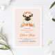 Watercolor Pug Peach Floral Birthday Invitation. Comemore com este charmoso e caprichoso convite de aniversário, que inclui ilustrações aquáticas de um cão-pug com sotaque floral de pêssego e fundo foliar. Personalize adicionando os detalhes do evento. Você também pode alterar a imagem traseira para qualquer foto ou imagem que queira apresentar.