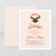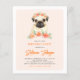 Convide convidados para o seu evento com este convite de aniversário personalizável. Ele apresenta ilustrações aquarelas de um cachorrinho fofo, e flores de pêssego. Personalize adicionando seus detalhes. Este belo convite para cachorros é perfeito para aniversários, chás de fraldas e outros eventos.