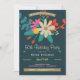 Convite de aniversário Floral Vibrante Convidar apresenta flores brilhantes e padrão de folha personalizado no verso.