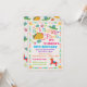 Taco de vamos sobre uma festa! Convites de festas de aniversários mexicanos coloridos e bonito de FIesta. Características desenhadas à mão em flores bordadas, entaladas, taco, pinata, sombrero e maracas em fundo antigo de linho. Ilustração desenhada à mão pelo bordado McBooboos Faux, este é um desenho