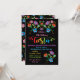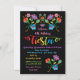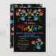 Convites de festas de aniversários mexicanos coloridos e bonito de FIesta. Pode mudar a redação para qualquer evento temático Fiesta. Características desenhadas à mão em bordados de flores e maracas em fundo preto. Ilustração desenhada à mão por McBooboos. Bordado Faux, este é um desenho