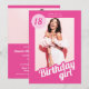 Este convite de aniversário rosa apresenta 2 fotos da homenageada e informações da festa para a celebração. Este convite de 2 lados é perfeito para definir o tom de uma festa de aniversário em homenagem à aniversariante e tudo em rosa!