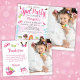 Convite de aniversário fotográfico spa para um convite digital ou imprimível para uma festa de aniversário de menina bonita. Personalize nomes, datas e informações.