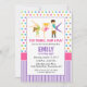 Convite de aniversário de ginástica, festa roxa