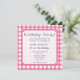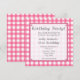 Um convite de aniversário com um fundo de gingham rosa na frente e atrás. Personalize o quadro cor-de-dentro do texto com detalhes da sua ocasião.