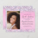 Convite de aniversário 16 bonito, glamouroso e giro, amigável, com brilho olográfico brilhante, roxo, rosa e prateado, ao longo das fronteiras em um fundo rosa, sua foto, e "Doce Dezesseis" e seu nome em um roteiro de tendências de cinza mole.