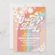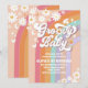 Celebre com estilo retrô com este convite de aniversário colorido e vibrante, apresentando cores pastéis, margaridas divertidas, sinais de paz, borboletas e estrelas. Perfeito para um primeiro aniversário ou qualquer festa divertida, este design vibrante captura o espírito de paz, amor e felicidade. Os convidados vão adorar o caprichoso clima retrô, tornando sua celebração inesquecível. Personalize com os detalhes da sua festa para um convite único e atraente que define o tom para um evento alegre.