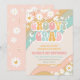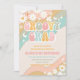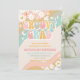 Celebre com estilo este convite de aniversário retrô groovy com listras onduladas pastel, margaridas divertidas, estrelas, corações e raios. Perfeito para um primeiro aniversário ou qualquer festa divertida, este design vibrante captura paz, amor e charme retrô. Personalize com os detalhes do seu evento para criar um souvenir único que os convidados adorarão. Ideal para celebrações temáticas retrô, festas hippies ou aniversários infantis caprichosos.