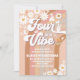 Celebre com estilo com este convite de aniversário retrô e groovy, apresentando margaridas divertidas, sinais de paz, borboletas, corações e listras onduladas em tons pastel. Perfeito para festas infantis, este design inspirado nos hippies define um tom alegre com cores vibrantes e detalhes caprichosos. Personalize com o nome da criança, idade, data da festa e informações de RSVP para criar um souvenir único. Ideal para aniversários de 4 anos ou qualquer celebração divertida, este convite boho traz paz, amor e alegria para o seu dia especial.