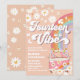 Celebre com um estilo retrô com este convite de aniversário hippie de arco-íris! Com um fundo rosa pastel, margaridas alegres, borboletas e um arco-íris vibrante, este design captura o espírito despreocupado dos anos 60. Uma van decorada com flores e um símbolo da paz adiciona um charme vintage divertido, tornando-o perfeito para adolescentes que amam festas coloridas e inspiradas no estilo boho. Personalize com os detalhes do seu evento e defina o tom para uma celebração alegre e de paz e amor.