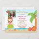 Bonitas Crianças Luau Convite de aniversário. Apresenta crianças vestindo saias de grama na areia com palmeira e flores de hibisco. Alguns elementos JDDigiDesign