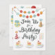 Um convite de aniversário fofo apresenta ilustrações originais pintadas à mão sobre itens de festa e bolos. É bom para a festa de aniversário de crianças e adultos.