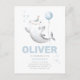 Cartão postal de convite de aniversário tema tubarão. Para crianças. Balão. Personalizável. Personalizado. Tubarão-martelo. Chapéu de aniversário. azul. Bolinhas. Balões. Pintado à mão. Desenhado à mão.