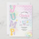 Faça o seu próximo aniversário ser especial com este lindo convite de aniversário inspirado em jumps trampoline pastel.