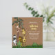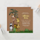 A Selva era Convite de aniversário de toda a gangue Safari. Personalize seus convites de festas com seus detalhes. Design tem uma zebra, leão, girafa, macaco e bananeira.