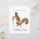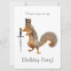 Um esquilo vestindo uma coroa e se inclinando em sua espada. Que resistiria a vir à sua festa de aniversário quando mandasse este convite real.